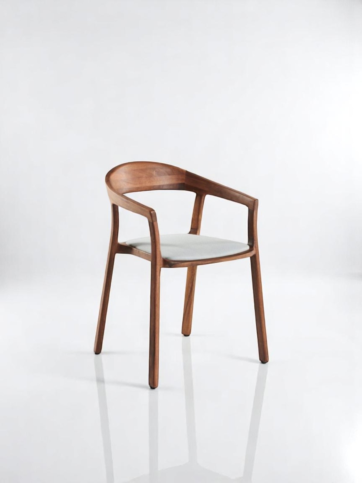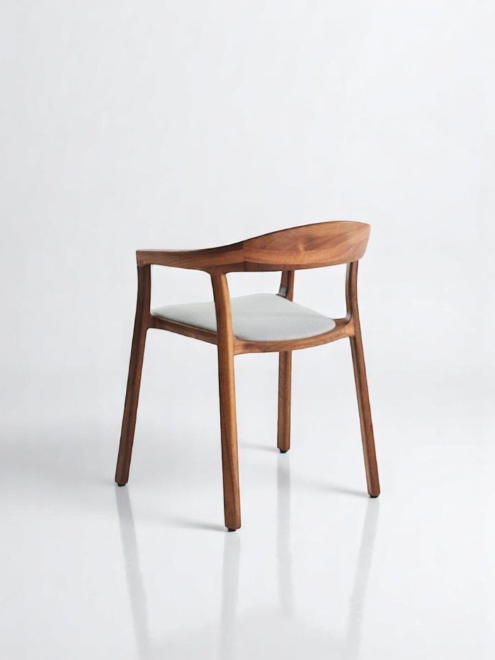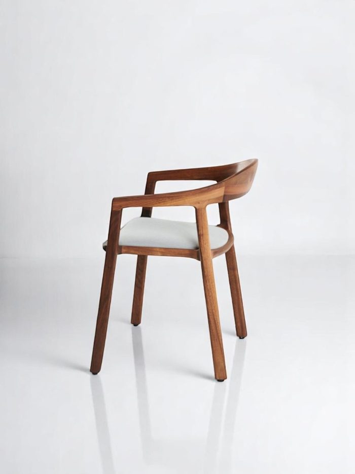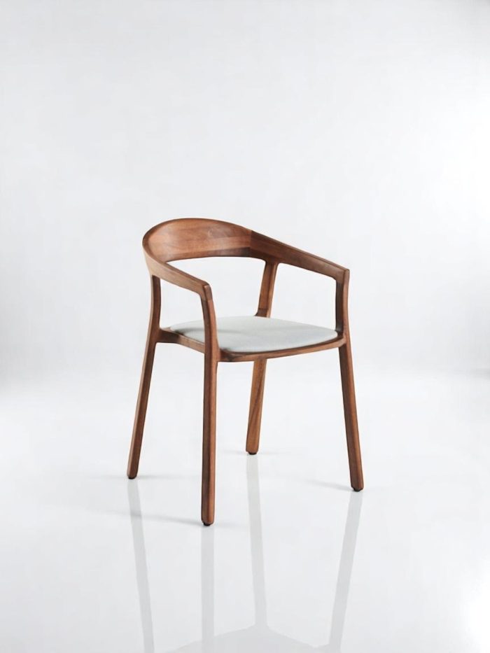 Effortlessly modern with a sculptural silhouette, the Alva Chair combines fluid curves and ergonomic design for a luxurious seating experience. Carved from solid teak wood, its gently arched back and integrated armrests offer both style and support. The upholstered seat cushion adds a soft contrast, making it perfect for dining settings, executive spaces, or refined residential interiors.