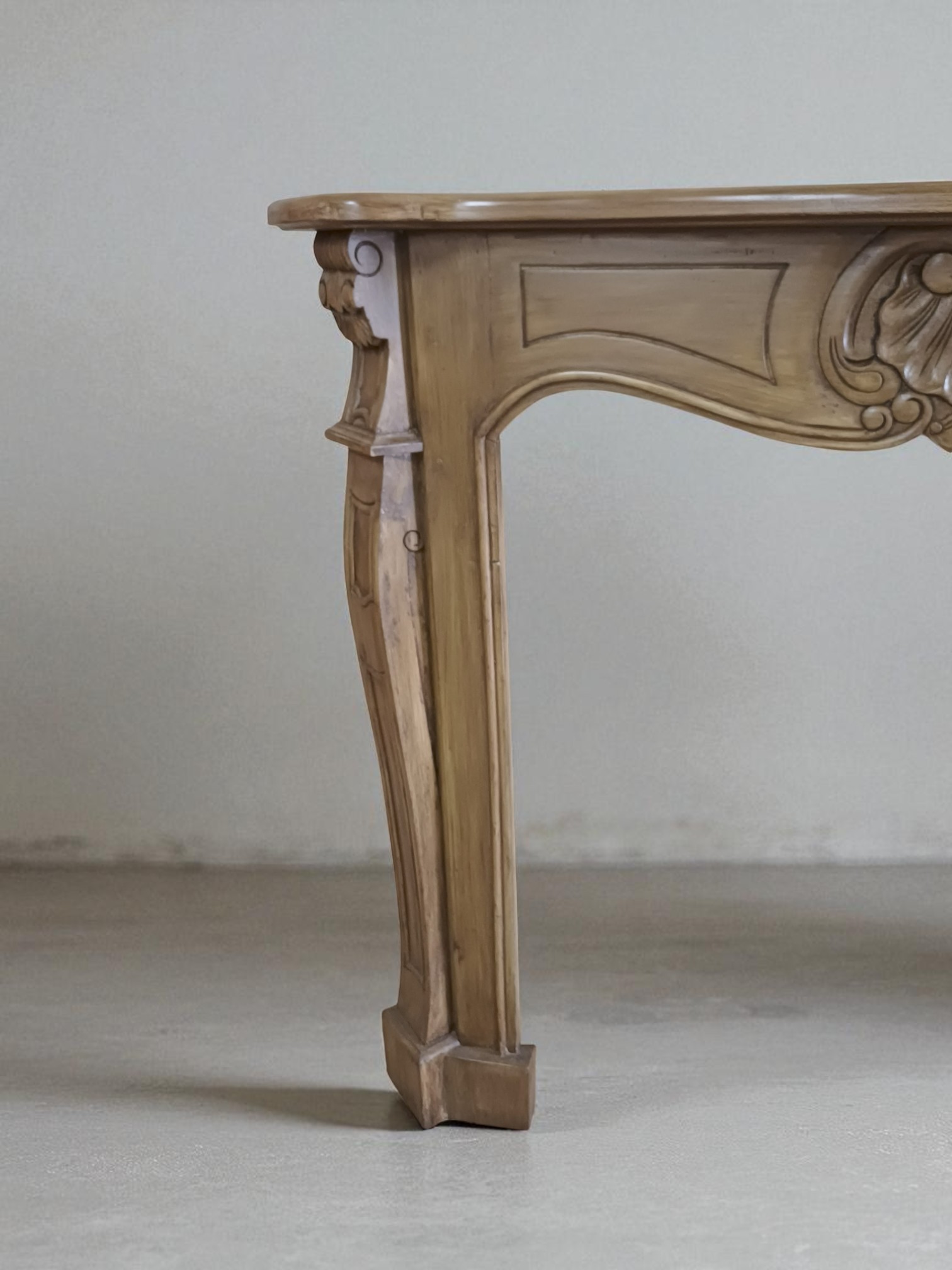 Introducing our classic fireplace, expertly crafted from solid teak wood. Featuring elegant hand-carvings and a natural finish, this timeless piece adds warmth and sophistication, instantly becoming the focal point of your living space.