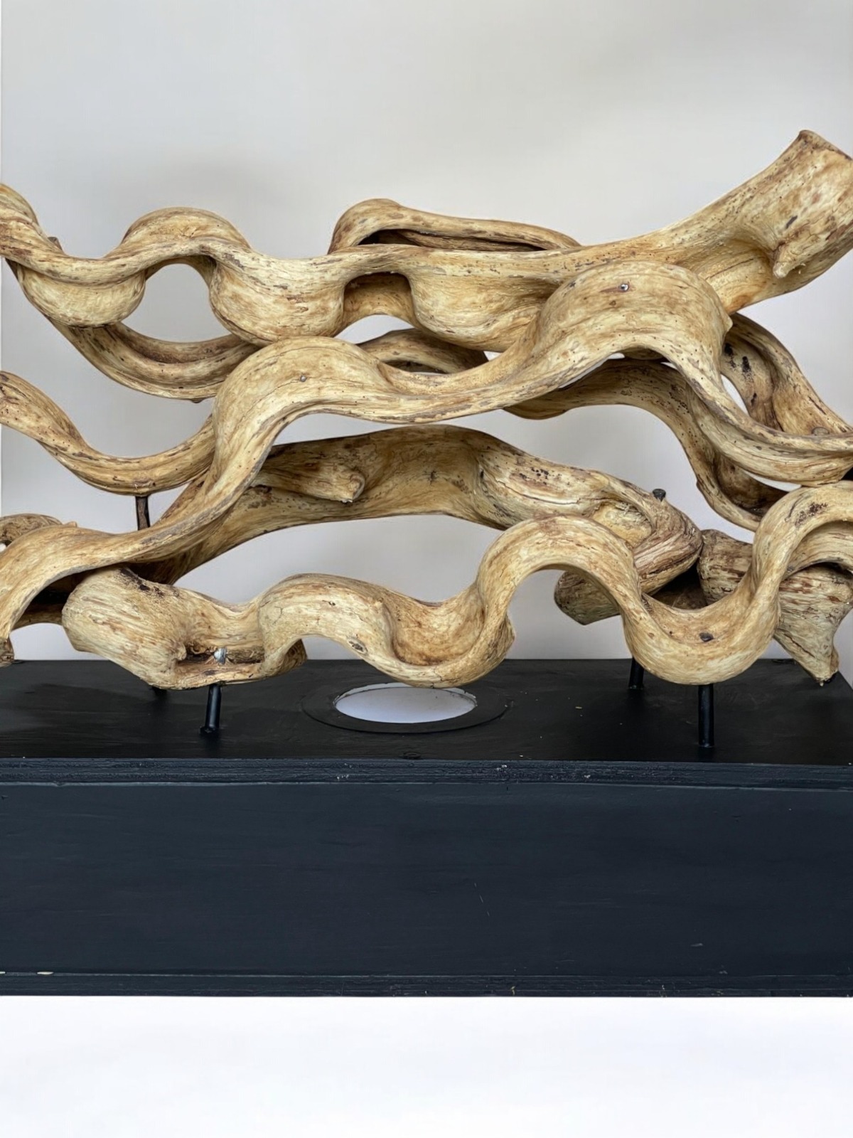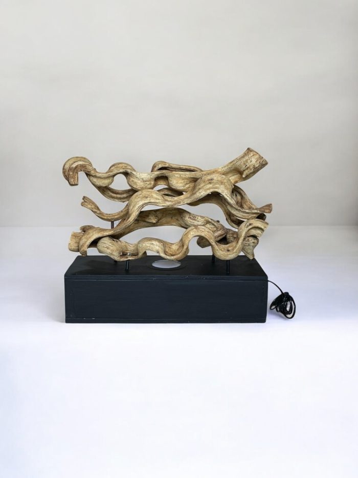 Introducing the captivating Entangled Timber Lighting, a truly unique piece that marries natural artistry with functional design. This striking lamp features an intricate top sculpture crafted from the naturally gnarled and interwoven roots of Liana wood, creating a fascinating display of organic forms. Each piece of Liana root is meticulously arranged to form an “entangled” yet harmonious composition, making every lamp a one-of-a-kind work of art.