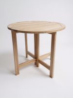 The Fino Folding Table is a practical and elegantly designed piece perfect for both indoor and outdoor use where space flexibility is key. This round table features a classic slatted tabletop and is constructed from solid, light-toned wood (likely Teak, known for its durability and weather resistance). Its design emphasizes clean, simple lines, featuring four straight legs that cross in the center for stability. The folding functionality (meskipun tidak terlihat di gambar, diasumsikan dari nama) makes it easy to store and deploy, making it an ideal choice for balconies, patios, small dining areas, or casual seating arrangements in Scandinavian or Coastal style settings.