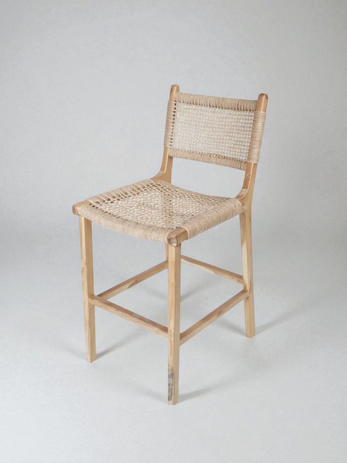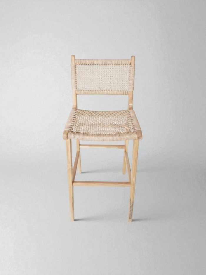 The Java Bar Chair offers a classic, airy design that beautifully merges traditional craftsmanship with modern simplicity. The chair is built on a sturdy frame of solid teak wood with a light, natural finish. Both the seat and the backrest feature meticulously woven natural rattan panels, providing exceptional breathability, comfort, and a rich texture. Its clean, straight lines and warm materials make it an ideal, versatile piece for a casual kitchen island or a covered outdoor bar area.