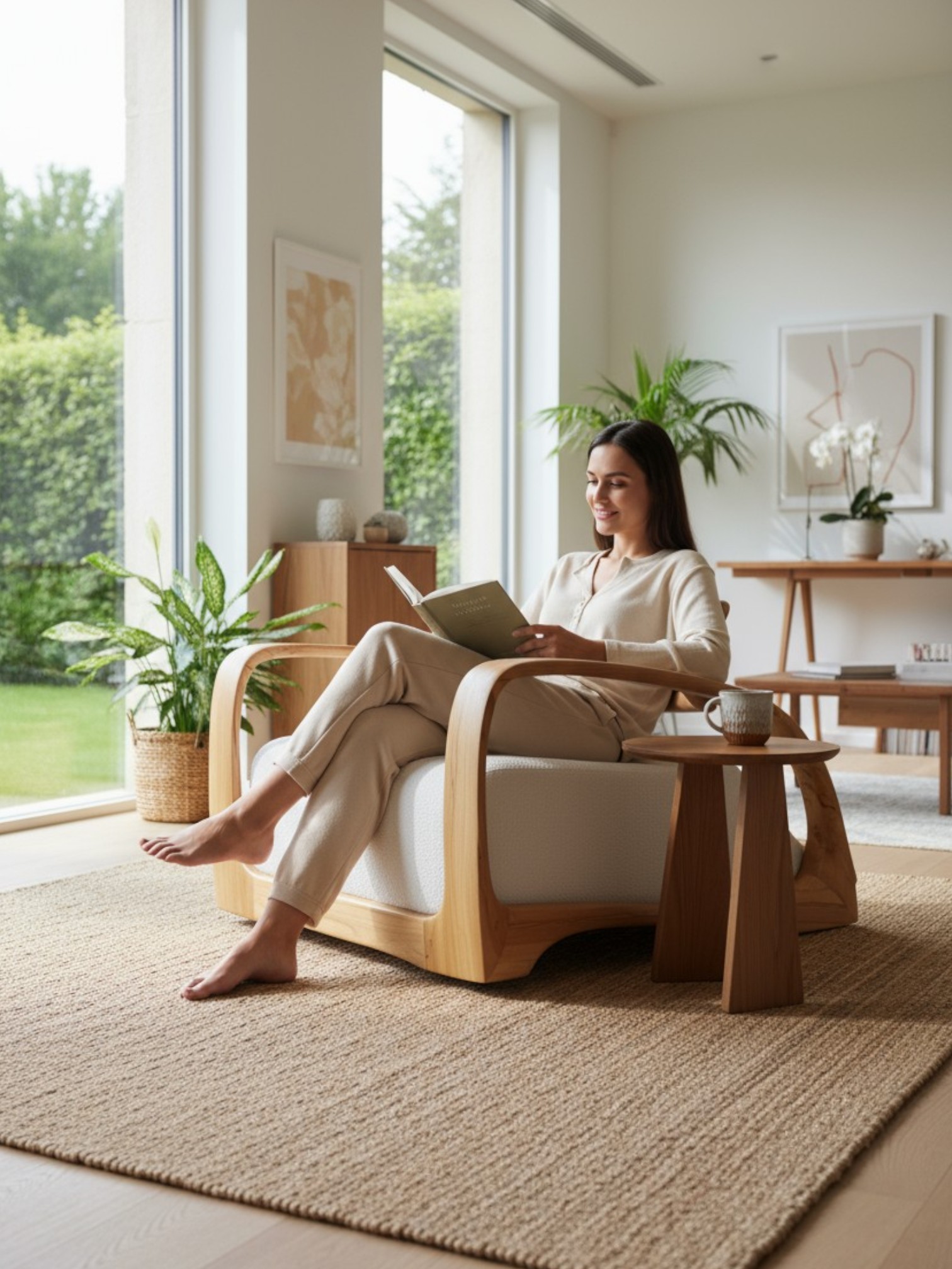 Embodying effortless elegance, our Fluid Lounge Chair is meticulously sculpted from solid Teak wood, showcasing its rich, flowing grain. Its gracefully curved frame and ergonomic design create a truly inviting form, making it a statement piece that offers both luxurious comfort and artistic presence.