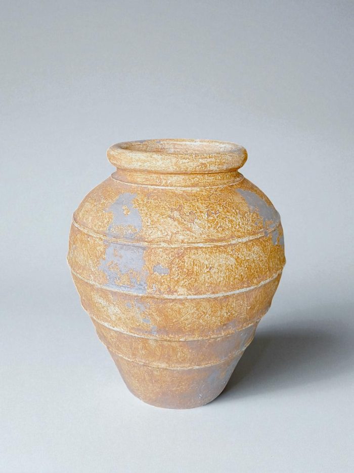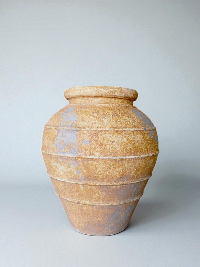The Ochre Vase is a beautifully rustic piece that brings a touch of vibrant, natural color and texture to your space. Crafted from terracotta earthenware, the vase features a charmingly distressed finish in a warm, earthy ochre tone. A unique ribbed pattern covers the bottom half, creating a textural contrast with the smoother top. This decorative vase is perfect for adding a pop of warm color and a sense of handcrafted authenticity to a console table, shelf, or entryway.