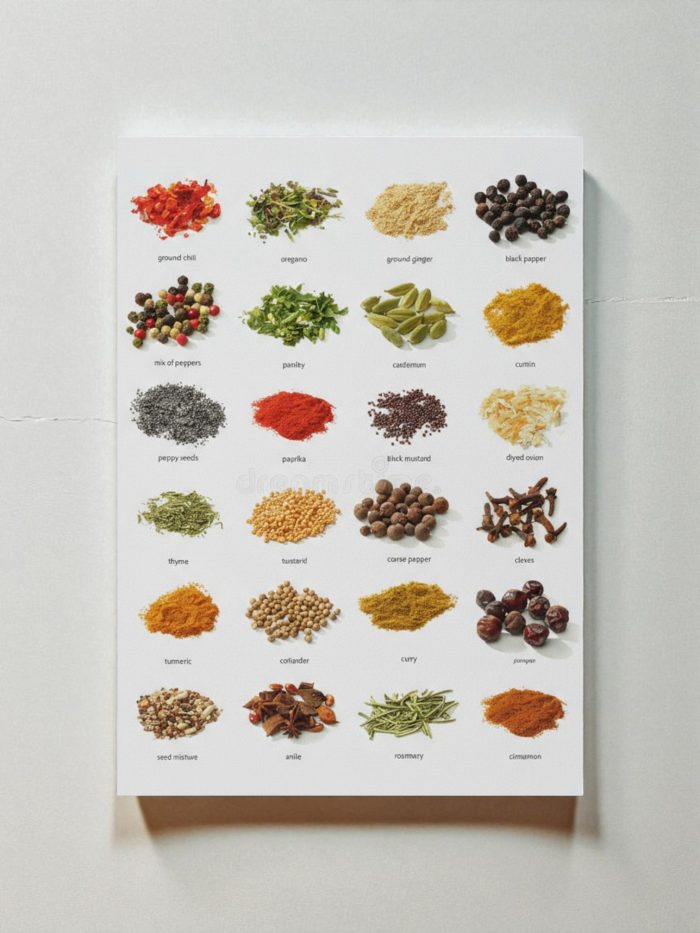 This 24 Kitchen Elements Educational Print is a vibrant and informative piece of art, perfect for any culinary enthusiast or kitchen space. Featuring 24 distinct piles of spices, herbs, and seasonings, each element is beautifully photographed and clearly labeled with its common name. From the fiery “ground chili” and aromatic “rosemary” to exotic “cardamom” and earthy “turmeric,” this print offers a visually appealing and practical guide to essential kitchen ingredients. Its clean, grid-like layout against a bright white background makes it easy to read and stylish to display. Ideal for kitchens, dining areas, or even educational settings, it serves as both a decorative accent and a handy reference.